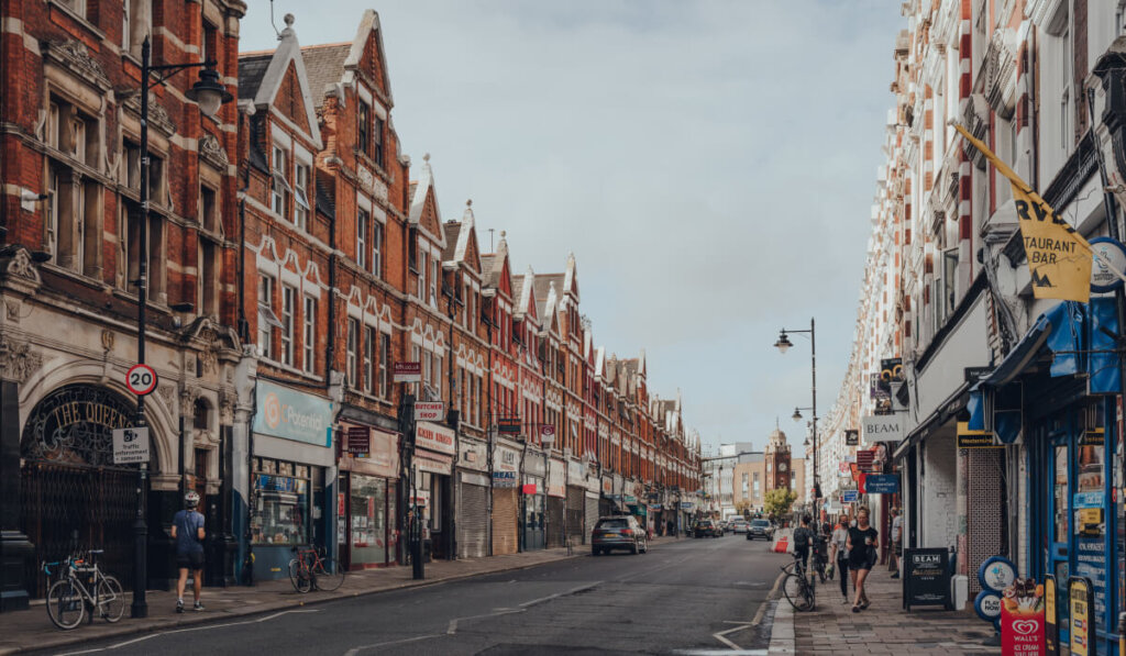 Muswell Hill, known for its panoramic views and grand Victorian and Edwardian architecture, is another key North London neighbourhood. Queens Avenue displays an excellent illustration of the neighborhood’s large Victorian terraced homes which feature prominent bay windows and intricate decorative elements.