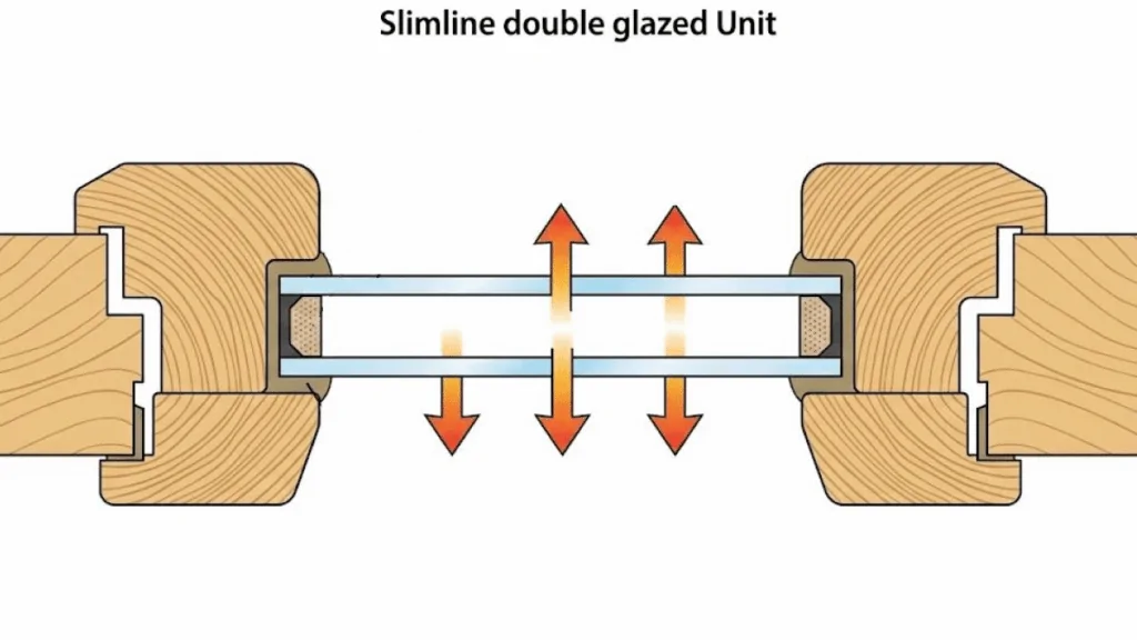 These gases are denser than air, slowing conduction and lowering the window’s U-value by up to 30%. In heritage windows, slimline gas-filled units (14–16mm thick) offer a practical balance of energy efficiency and authenticity, though they require high-quality edge seals to prevent long-term gas leakage.